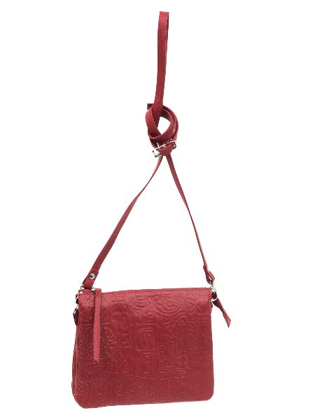 Внутри три отделения, открытый карман для телефона или мелочей и карман для документов на молнии. Сверху сумка закрывается на металлическую молнию. На молнии декоративное украшение из кожи. На задней стороне сумки есть карман на молнии. У сумки регулируемый плечевой ремень. Максимальная длина 125 см.