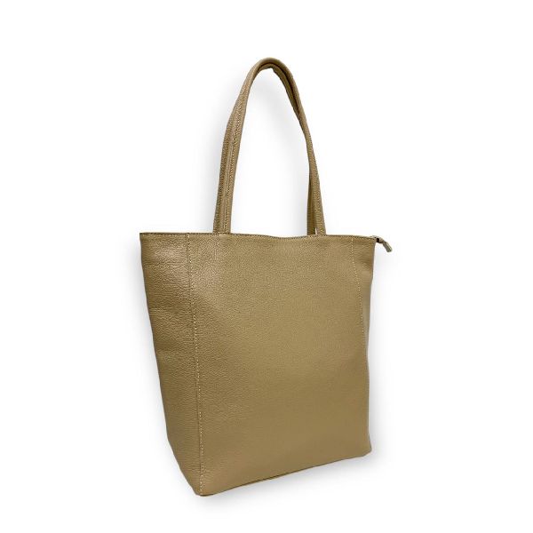 Женская сумка из натуральной кожи. На задней стенке сумка имеет карман на молнии. Сумка снабжена застежкой молния. Сумка имеет одно отделение с потайным карманом на молнии и открытым карманом для мелочей. У сумки две длинные ручки высотой 25 см, что позволяет сумку носить в руках и на плече.